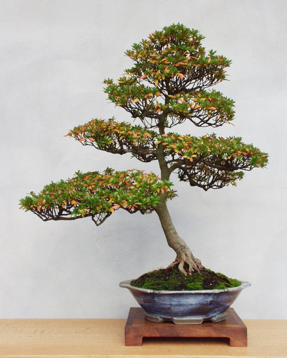 Helen Davis was a member of the Triangle Bonsai Society in Raleigh, North Carolina. Her name has appeared several times in this Journal because she was one of the very first people to donate some of her personal bonsai collection to The North Carolina Arboretum, back in the mid-1990s when the Arboretum first got into the little tree game. The focus of this entry is a Satsuki azalea Helen gave us then.