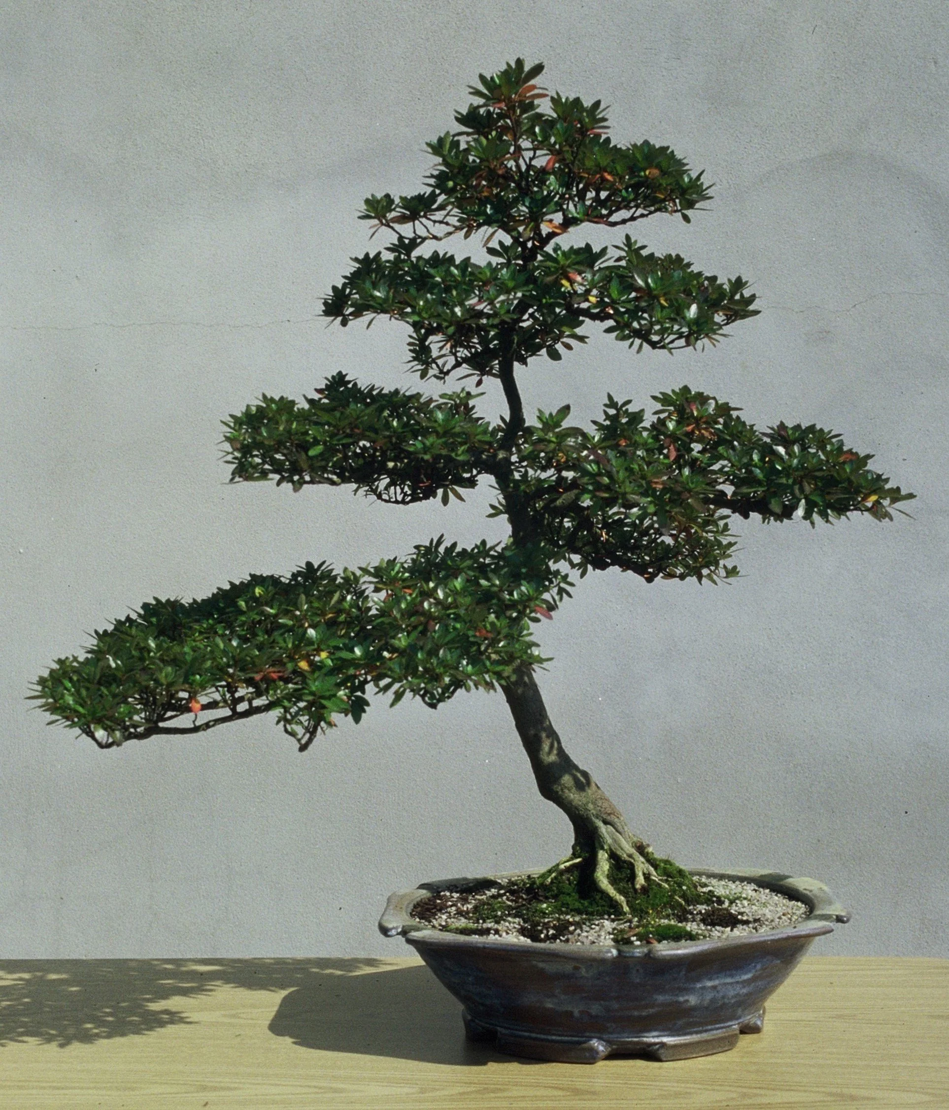 After the donation was accepted, this azalea was planted in a bonsai pot and work continued on filling out the branching. This next photograph from four years later was the first made of the specimen as part of the Arboretum collection:
