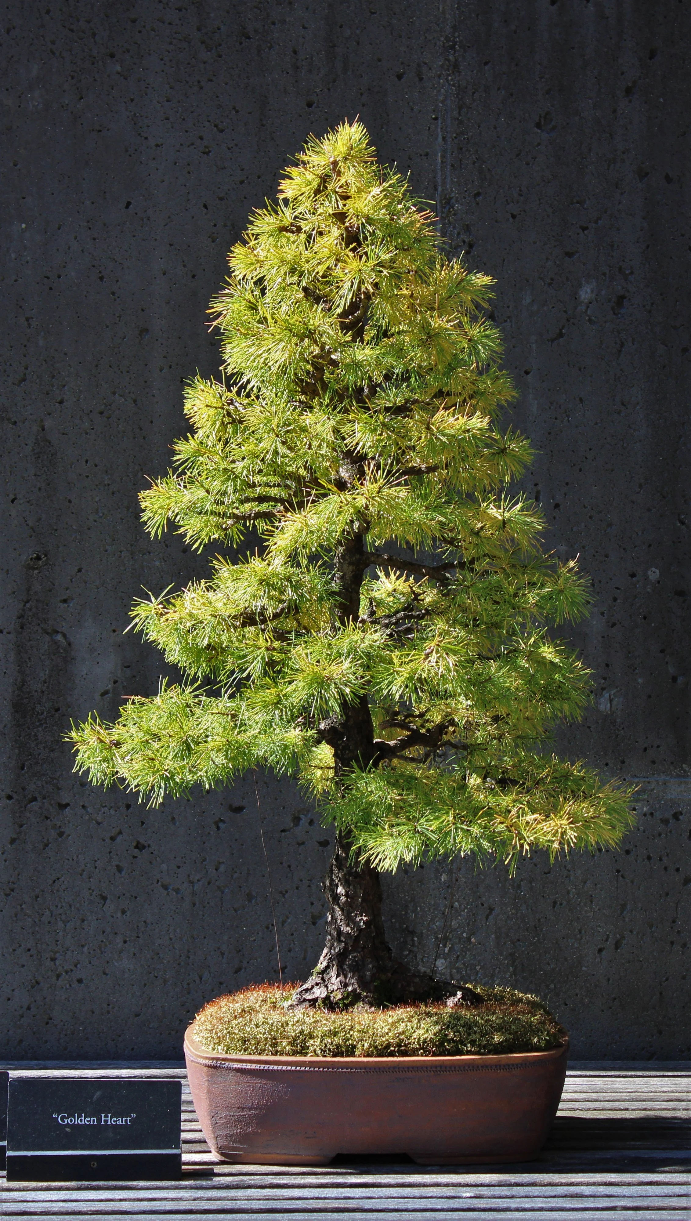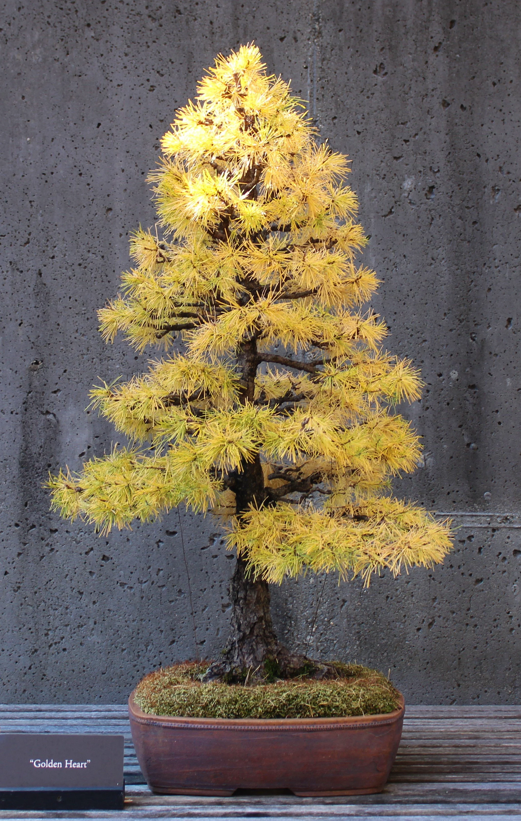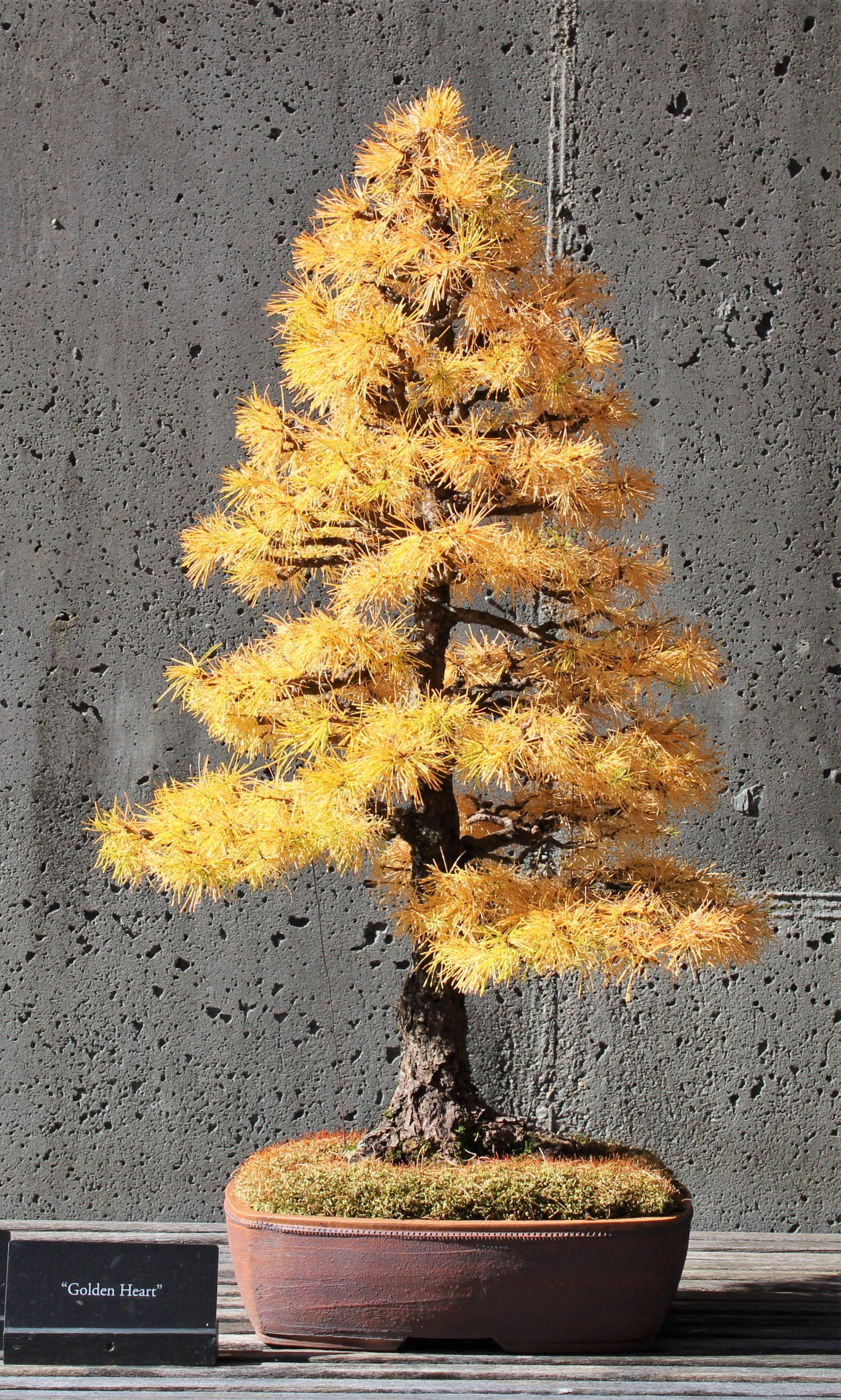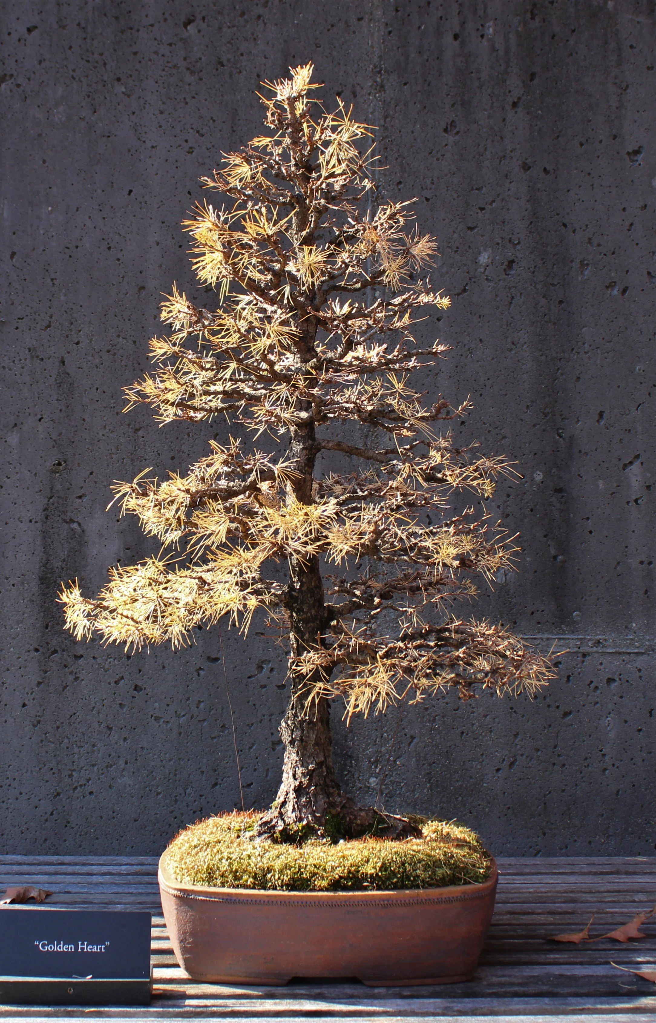 Bonsai has depth; one can spend an entire life learning about it and never know everything there is to know about it. In 1995 I was at the very beginning of my personal bonsai learning curve, working with the trees in the Arboretum's collection and trying to figure out how to make them better. I didn't know much. The tamarack Ms. Wells had donated was designed in what is called the formal upright form, which is defined by having a trunk that is straight, without curves or bends, and standing perpendicular to the ground. We didn't have any other formal uprights in our collection at that time, so I was keen on making this tamarack, already appealing to me, into the best formal upright bonsai possible. I spent a lot of time studying it and decided that what had been the back side of the tree ought to become the front, and the number one branch — the lowest and largest branch on the tree — needed to be removed. Making decisions like these has become commonplace over the years of my career, but back then it represented a bold and risky proposition. I took a deep breath, made the changes, and when all was done looked at the result and decided it was okay. I hadn't messed up.