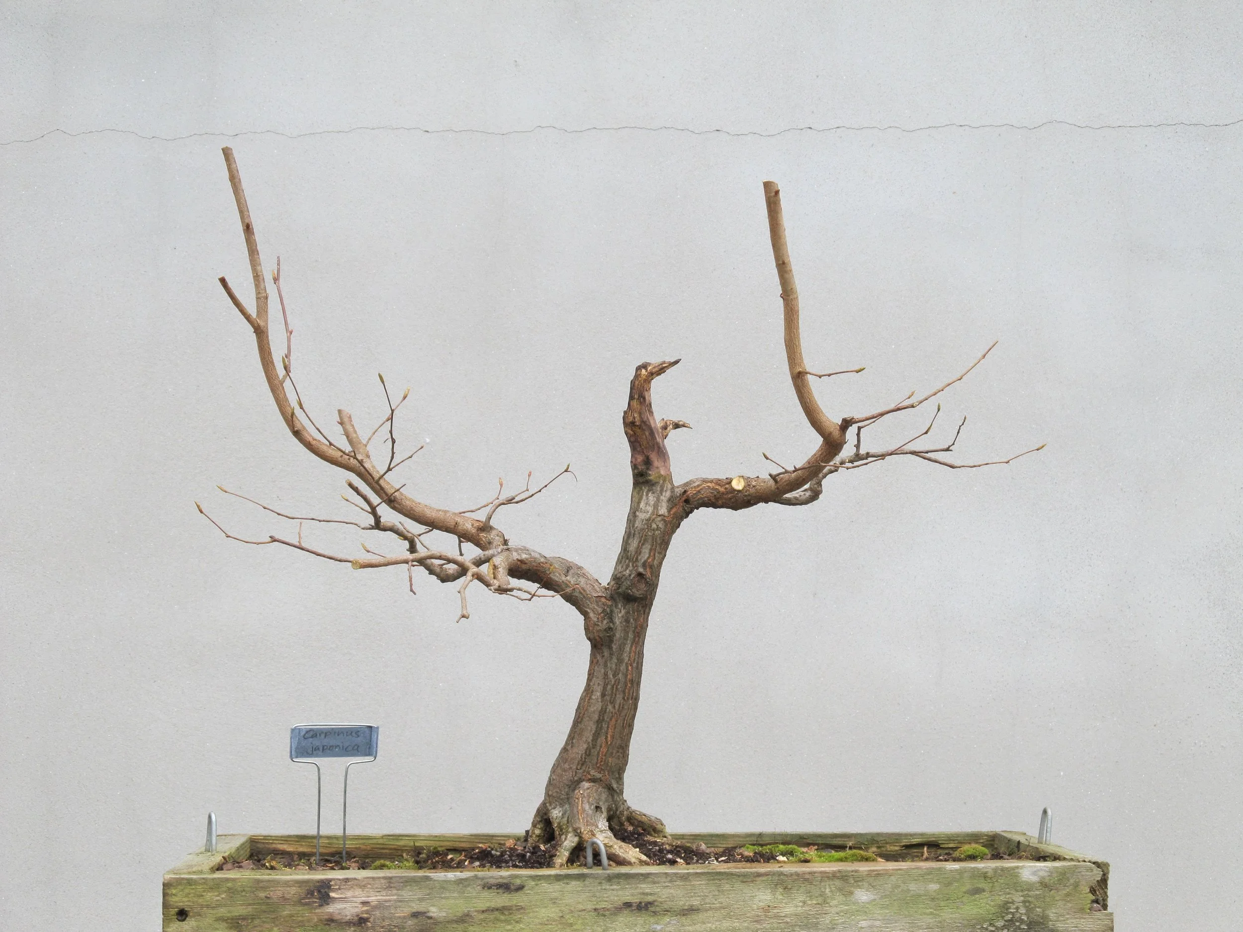 When we accepted donations, I always had an eye out for specimens that might be useful additions to the Arboretum collection. Donations, after all, were the primary means by which we initially built the collection. My interest in this Japanese hornbeam, the real reason we held on to it and did not auction it, was its species — the tree was attractive because it was a Japanese hornbeam. We had one other, but that Japanese hornbeam was a component in a tray landscape and not a stand-alone specimen. We already had American hornbeam and Korean hornbeam specimens in our collection, and I was thinking in terms of building out that part of our portfolio.
