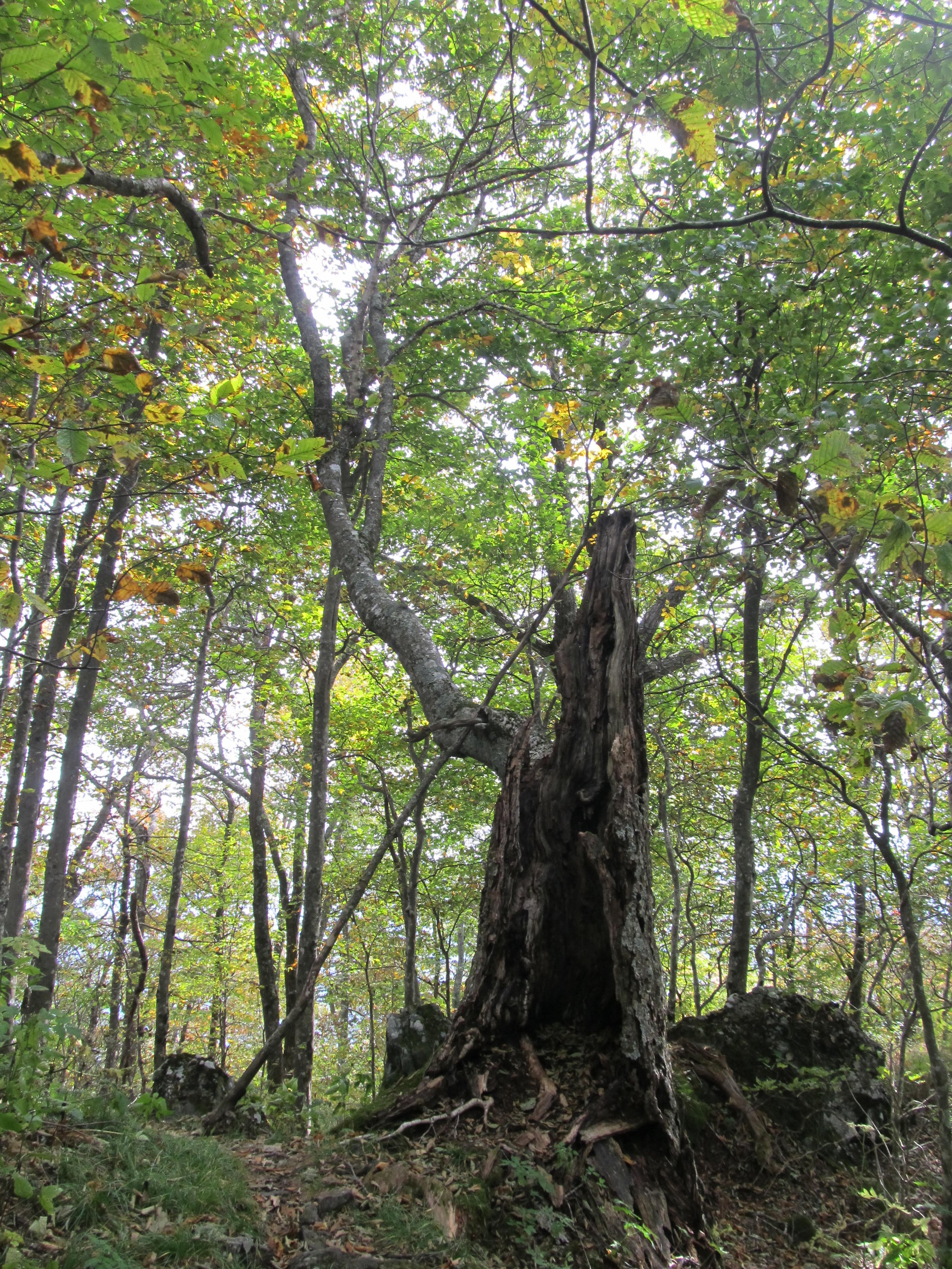 How would a tree in nature come to be shaped like the Arboretum’s Japanese hornbeam? It happens through a process of damage and recovery, as can be seen in these images showing trees affected by that very phenomenon: