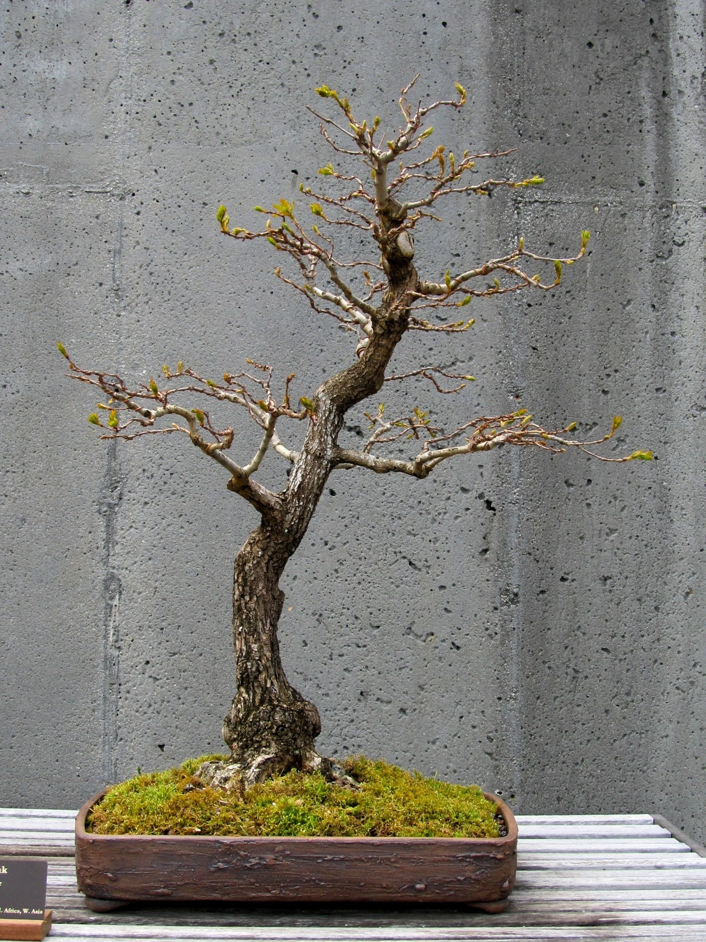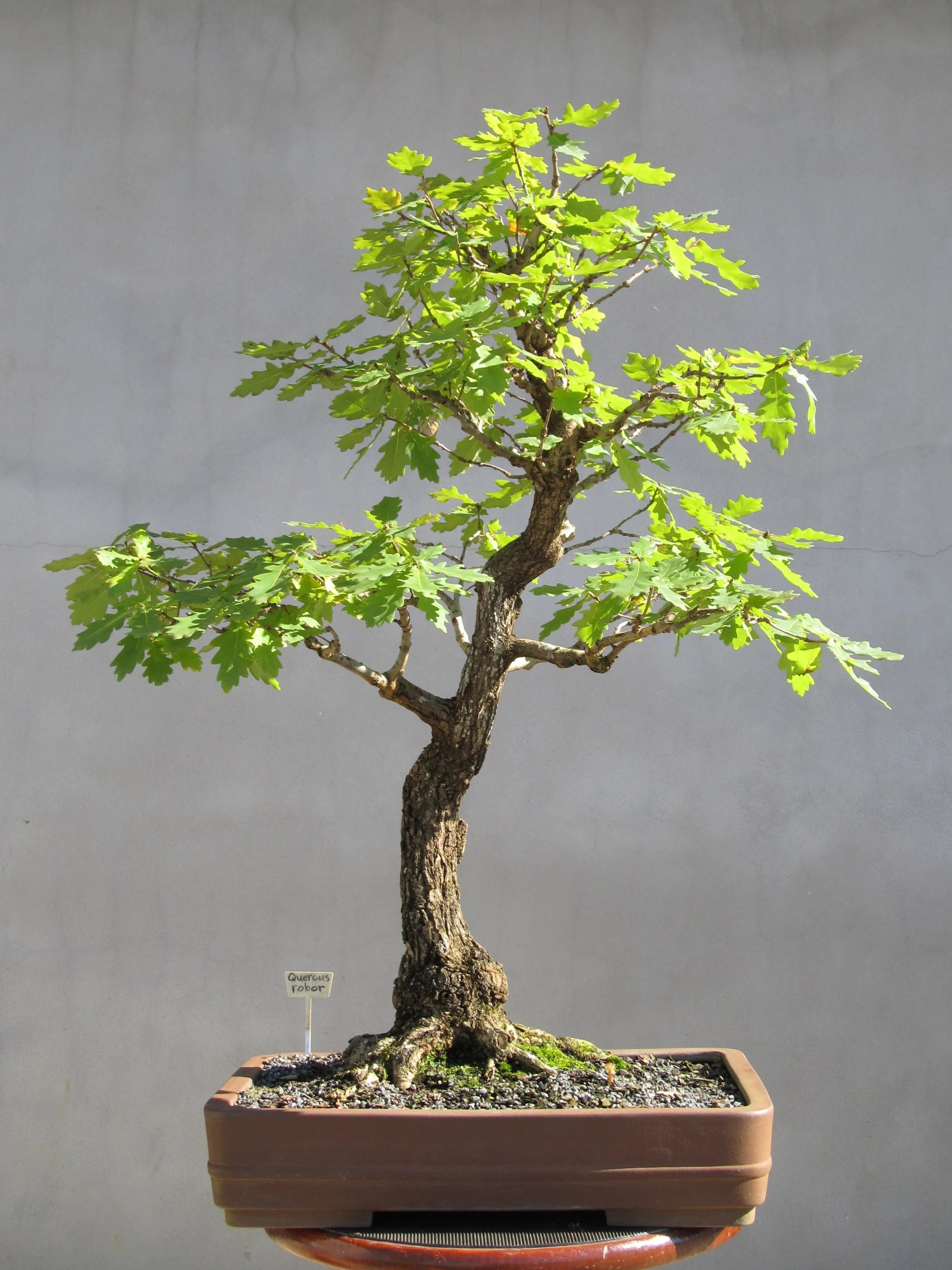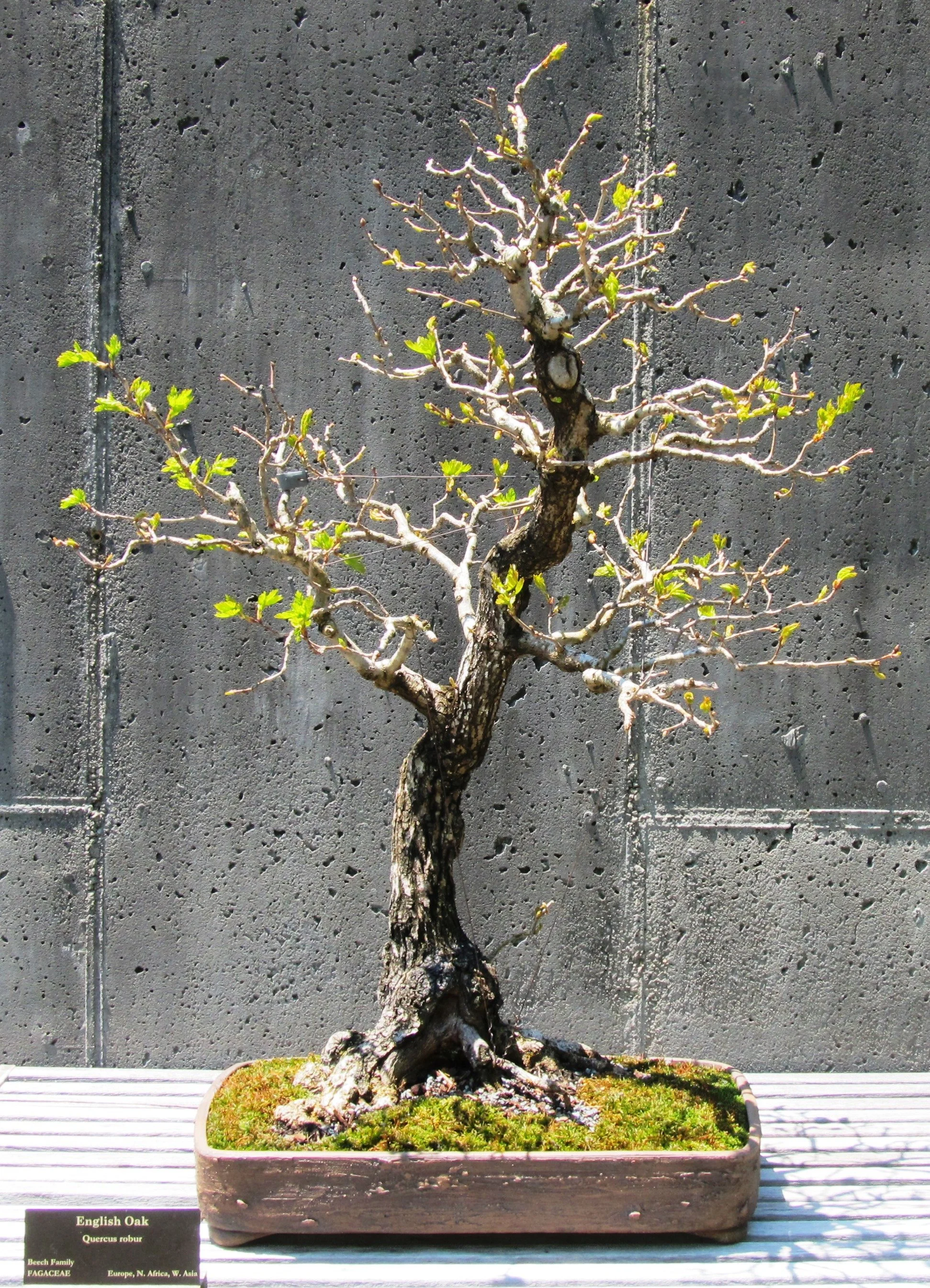 English oak leaves look very much like those of our native white oak (Quercus alba), only they are naturally smaller in size. That was an attraction. White oak is one of the great trees in this part of the world, and happens to be the most common tree species on the Arboretum property. I have tried numerous times over the years to make a white oak bonsai, but never with success. Like many of our native oaks, Quercus alba does not take well to bonsai culture. Quercus robur, on the other hand, had already proven amenable to container culture, and that, taken together with its smaller leaf size, suggested it might work as a bonsai subject. I figured it wouldn’t hurt to give it a try.
